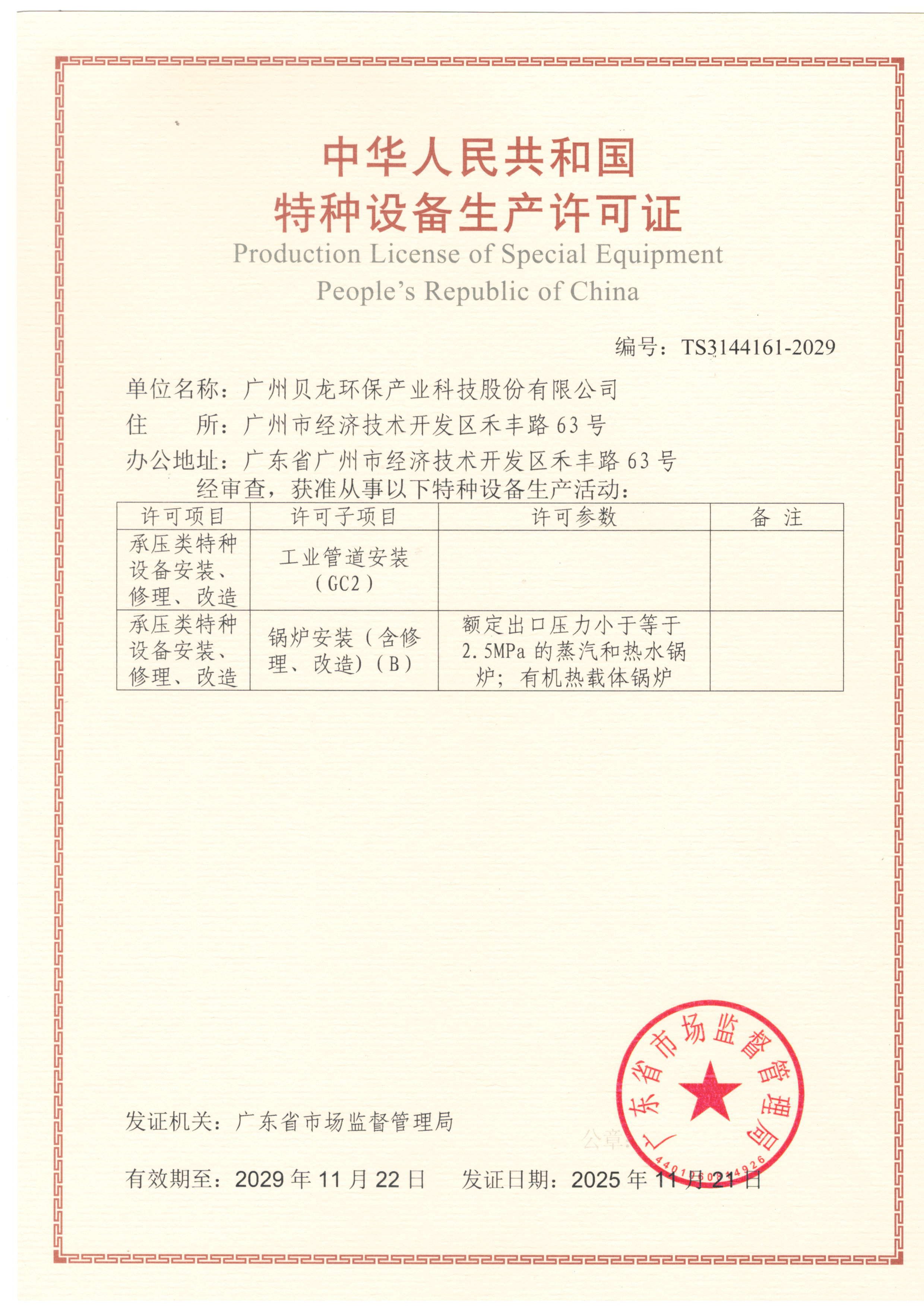 特种设备安装改造维修许可